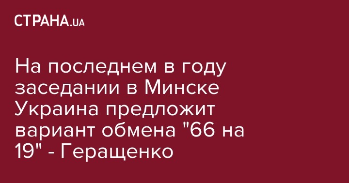 На последнем в году заседании в Минске Украина предложит вариант обмена "66 на 19" - Геращенко