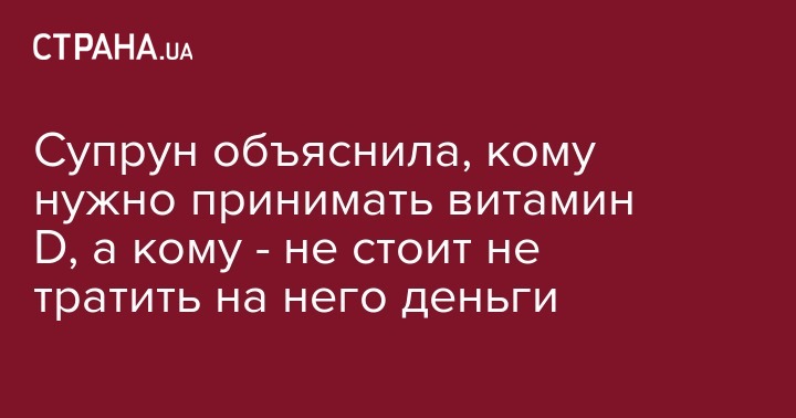 Супрун объяснила, кому нужно принимать витамин D, а кому - не стоит не тратить на него деньги