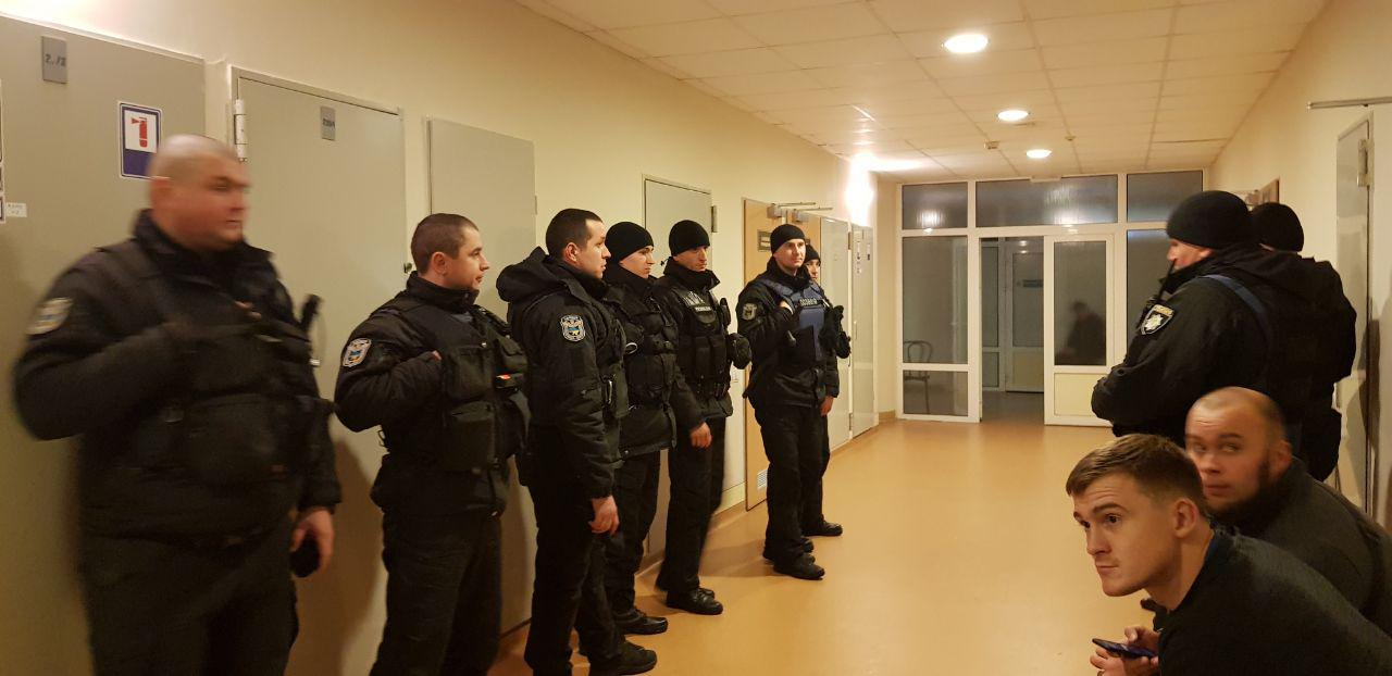9:29 После фальстарта 14 декабря вряд ли от националистов стоит ожидать вторжения в саму больницу. Здесь слишком много представителей власти и полиции. Теперь их сюда элементарно не пустят. Что, впрочем, не исключает уличных акций под окнами здания или каких-либо провокаций в холле, где уже собрались парни спортивной внешности.