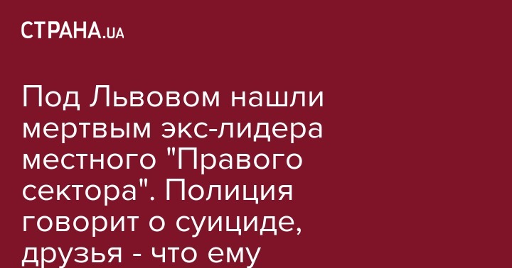 Под Львовом нашли мертвым экс-лидера местного "Правого сектора". Полиция говорит о суициде, друзья - что ему перерезали горло