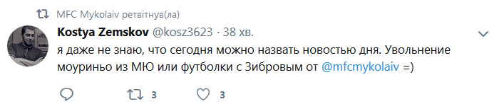 Один из пользователей сети заявил в комментарии к новости, что не знает какая новость дня главнее - то ли отставка тренера Манчестер Юнайтед Жозе Моуринью, то ли эти футболки с Зибровым.