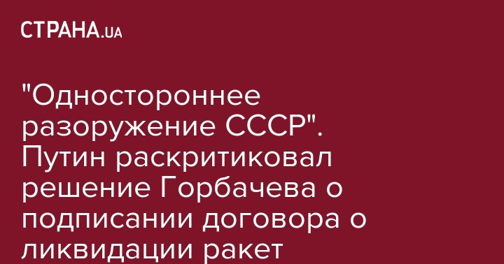 "Одностороннее разоружение СССР". Путин раскритиковал решение Горбачева о подписании договора о ликвидации ракет