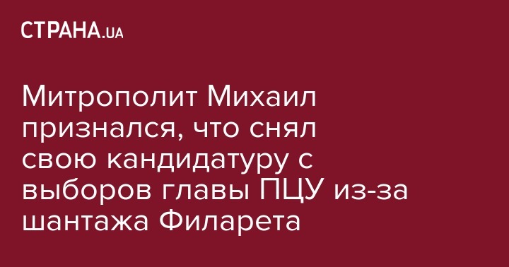 Митрополит Луцкий и Волынский из бывшего Киевского патриархата Михаил заявил, что снял свою кандидатуру на выборах предстоятеля новой украинской церкви на объединительном соборе, потому что его шантажировали.