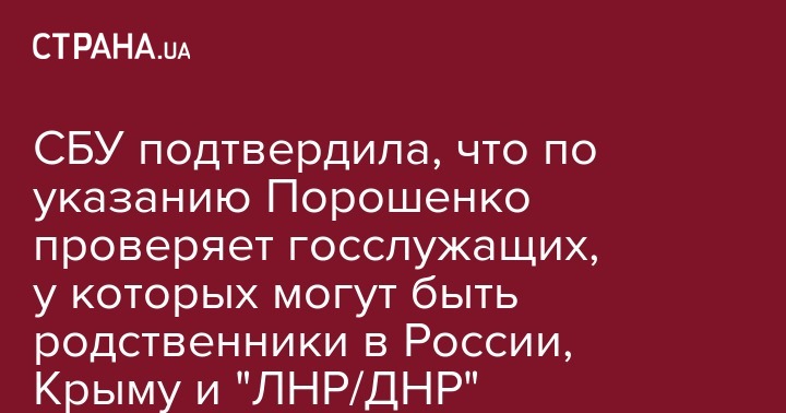 СБУ подтвердила, что по указанию Порошенко проверяет госслужащих, у которых могут быть родственники в России, Крыму и "ЛНР/ДНР"