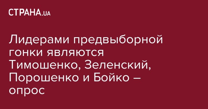 Лидерами предвыборной гонки являются Тимошенко, Зеленский, Порошенко и Бойко. Об этом свидетельствуют результаты социологического опроса Seetarget, сообщают "Украинские новости".