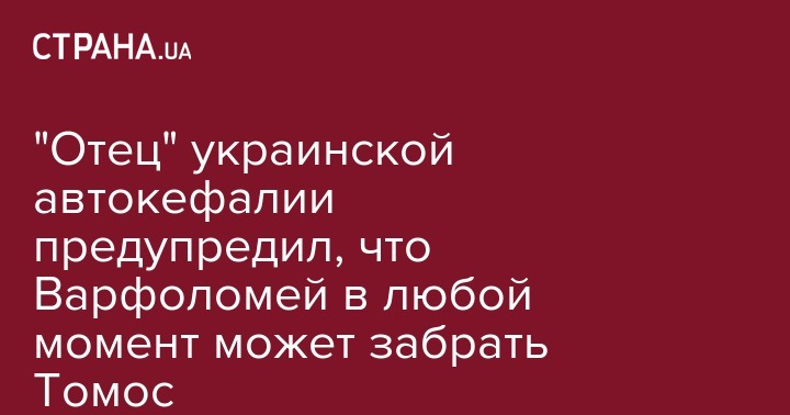 "Отец" украинской автокефалии предупредил, что Варфоломей в любой момент может забрать Томос