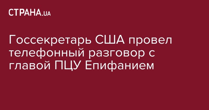 Госсекретарь США провел телефонный разговор с главой ПЦУ Епифанием