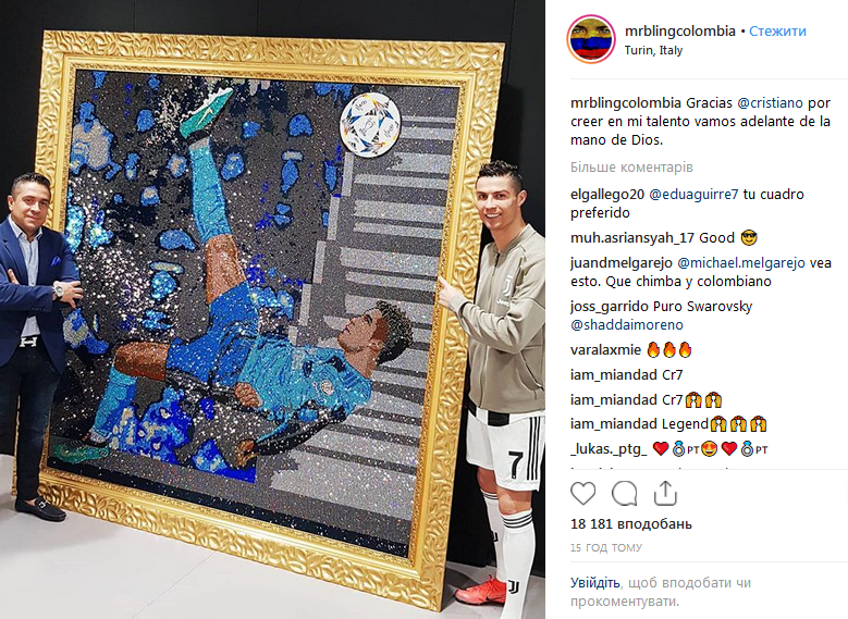 Роналду явно понравилась работа колумбийца, фото: instagram.com