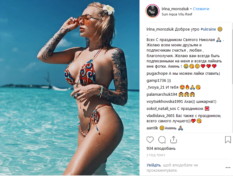 Ирина Морозюк, жена полузащитника киевского Динамо и сборной Украины Николая Морозюка, сейчас отдыхает на Мальдивах и оригинально поздравила украинцев с Днем Святого Николая, который отмечается сегодня, 19 декабря.