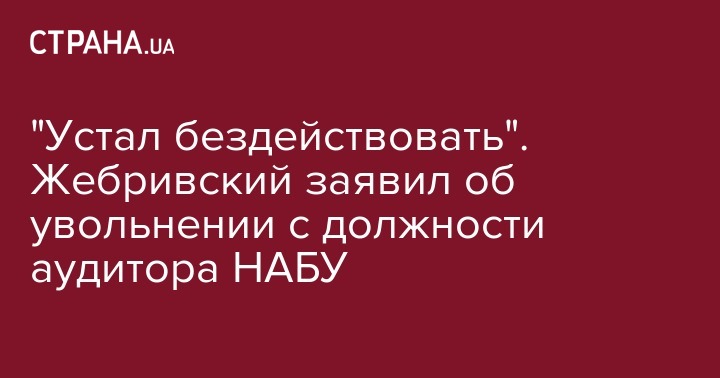 "Устал бездействовать". Жебривский заявил об увольнении с должности аудитора НАБУ