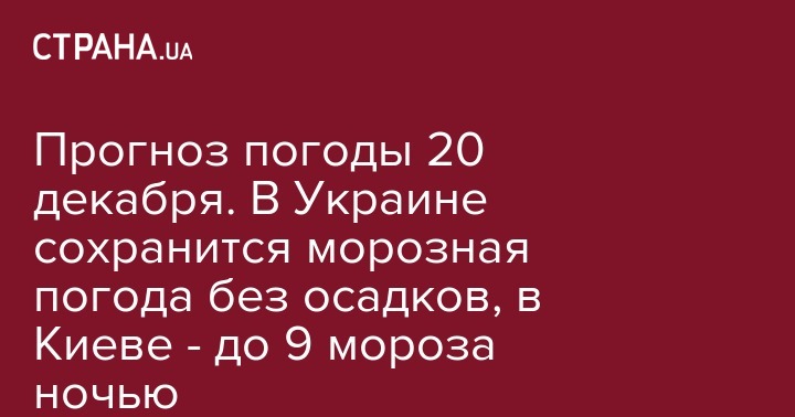 Прогноз погоды 20 декабря. В Украине сохранится морозная погода без осадков, в Киеве - до 9 мороза ночью