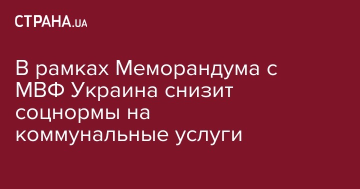 В рамках Меморандума с МВФ Украина снизит соцнормы на коммунальные услуги