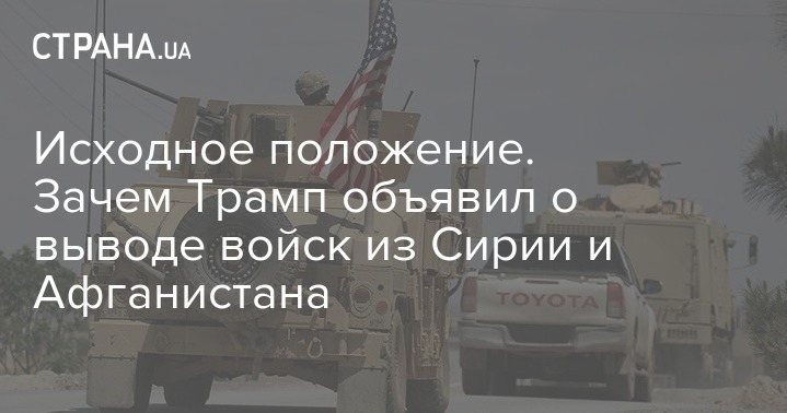 Причиной, побудившей Трампа к такому шагу, стало то, что "США одержали победу над ИГИЛ в Сирии".  "Это была единственная причина, по которой мы находились там во время моего президентства", – написал президент Соединенных Штатов на своей странице в Twitter.