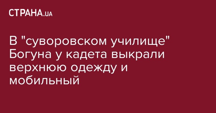В Киевском военном лицее имени Ивана Богуна (бывшее Киевское суворовское военное училище) неизвестные обокрали курсанта, похитив зимнюю куртку и недешевый мобильный телефон. Об этом "Стране" сообщили собственные источники в МВД.