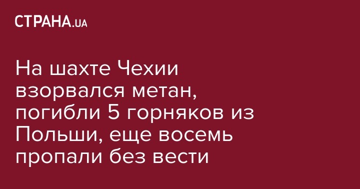 На шахте Чехии взорвался метан, погибли 5 горняков из Польши, еще восемь пропали без вести