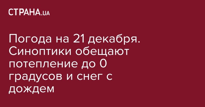 Погода на 21 декабря. Синоптики обещают потепление до 0 градусов и снег с дождем