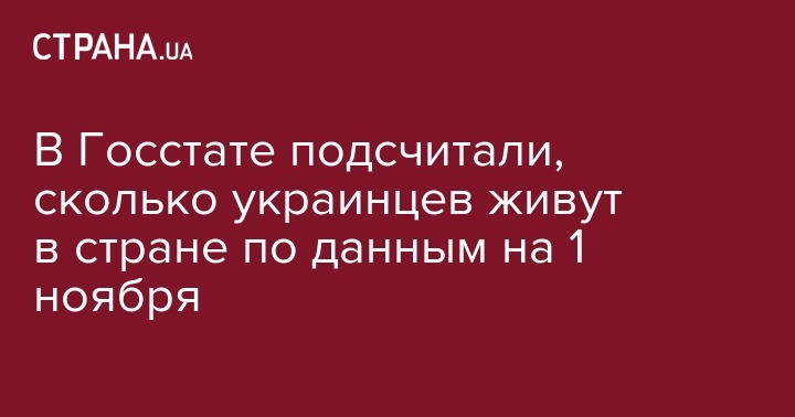 В Украине проживало 42,198 млн человек по состоянию на 1 ноября этого года. Такие данные приводит Госслужба статистики в ежемесячном демографическом отчете, пишет ubr.ua.