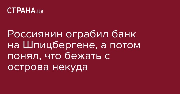 На полярном архипелаге Шпицберген, который принадлежит Норвегии и расположен посреди Северного Ледовитого океана, впервые в истории ограбили банк. При этом налетчика удалось задержать всего через полчаса. Об этом передает Gazeta со ссылкой на РИА Новости.