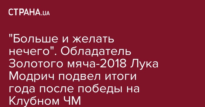 "Больше и желать нечего". Обладатель Золотого мяча-2018 Лука Модрич подвел итоги года после победы на Клубном ЧМ