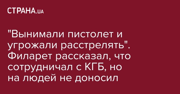 "Вынимали пистолет и угрожали расстрелять". Филарет рассказал, что сотрудничал с КГБ, но на людей не доносил