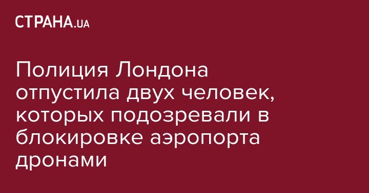 Полиция отпустила без предъявления обвинений 47-летнего мужчину и 54-летнюю женщину, которых ранее арестовали по подозрению в запуске дронов над аэропортом Гатвик возле Лондона. Об этом сообщает BBC.