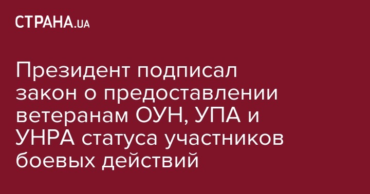 Президент подписал закон о предоставлении ветеранам ОУН, УПА и УНРА статуса участников боевых действий