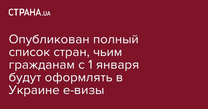 Опубликован полный список стран, чьим гражданам с 1 января будут оформлять в Украине е-визы