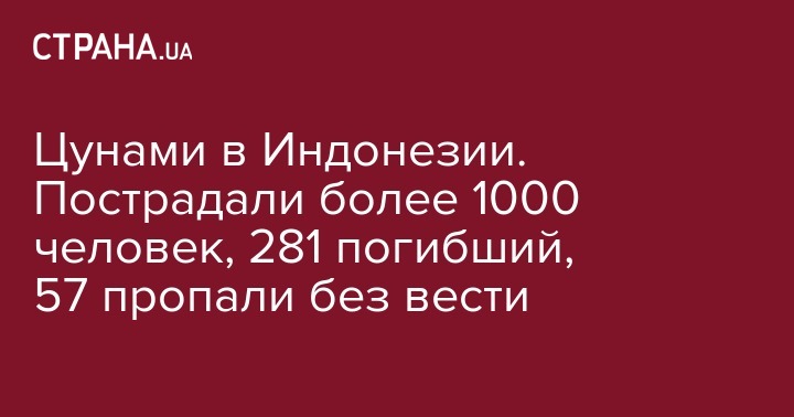 Цунами в Индонезии. Пострадали более 1000 человек, 281 погибший, 57 пропали без вести