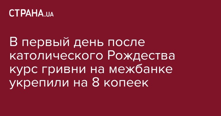 Как сообщала "Страна", на 19 декабря гГривня на межбанке укрепилась до 27,65 грн/$1.
