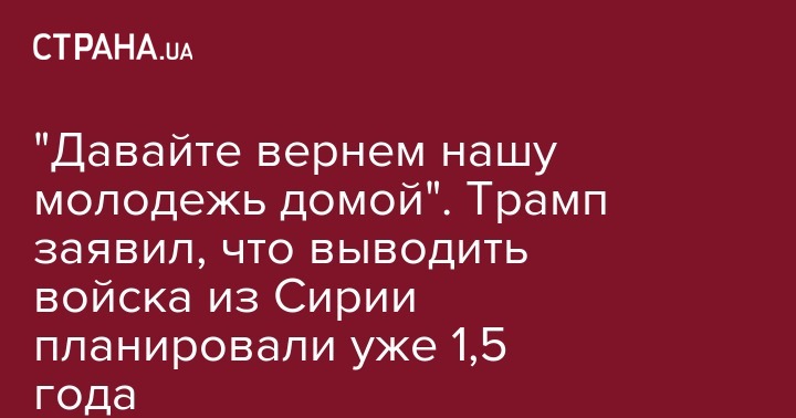 "Давайте вернем нашу молодежь домой". Трамп заявил, что выводить войска из Сирии планировали уже 1,5 года