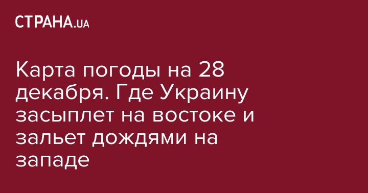 В Украине в пятницу, 28 декабря, ожидается облачная погода с дождями на западе и снегом в восточных регионах. Об этом сообщает Укргидрометцентр.
