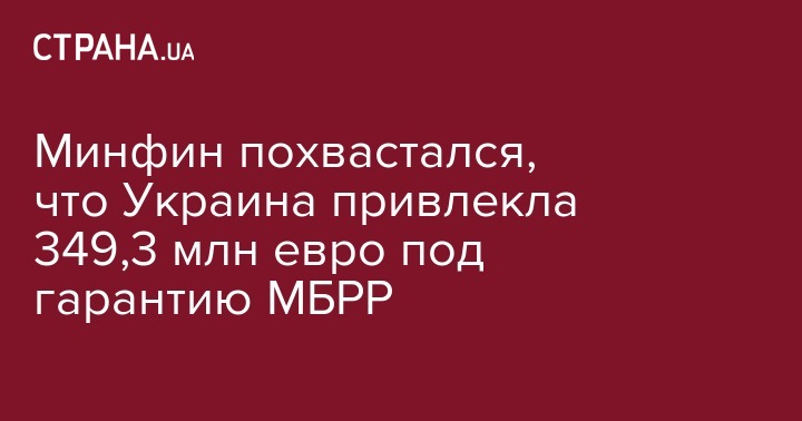 Украина привлекла у Deutsche Bank кредит на EUR349,3 млн под гарантию Международного банка реконструкции и развития (МБРР, структура Всемирного банка), сообщило Министерство финансов в четверг.