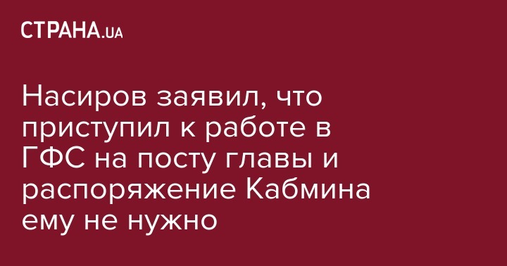 "Любые ссылки отдельных лиц о том, что для возобновления меня в должности необходимо распоряжение Кабинета Министров Украины являются неправомерными. Такое распоряжение необходимо лишь при назначении или освобождении Председателя ГФС Украины", - утверждает Насиров.