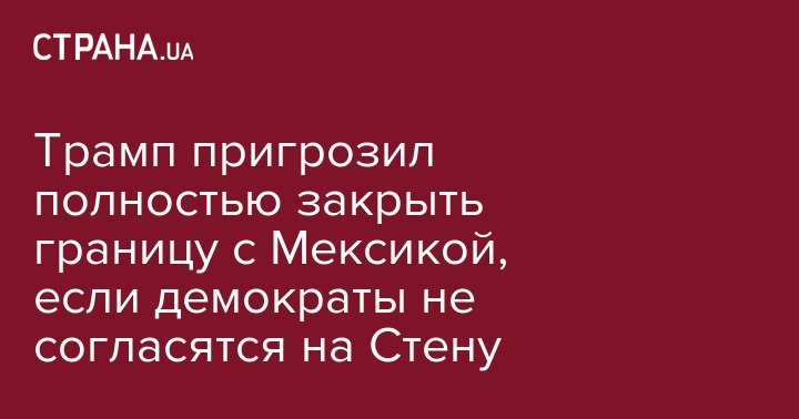 Отметим, что на строительство стены требуется $5,7 млрд из бюджета. 23 декабря работа американского правительства была приостановлена, поскольку демократам и республиканцам не удалось согласовать бюджет. Трамп требует, чтобы Конгресс выделил средства на строительство стены, а демократы отказываются это сделать.