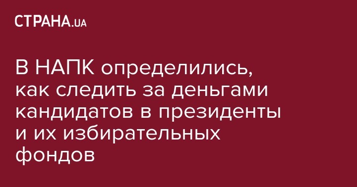 Национальное агентство по вопросам предотвращения коррупции (НАПК) согласовало Порядок контроля за поступлением, учетом и использованием средств избирательных фондов кандидатов на пост президента Украины. Об этом сообщила пресс-служба НАПК 28 декабря.