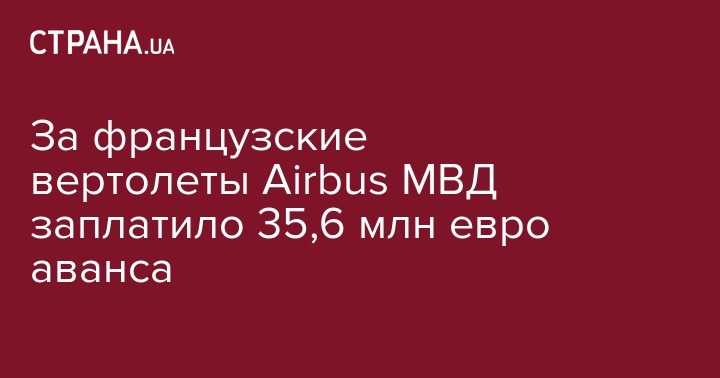 Министерство внутренних дел констатирует оплату компании Airbus Helicopters (Франция) 35,6 млн евро аванса за вертолеты. Об этом говорится в ответе МВД на запрос Украинских Новостей.