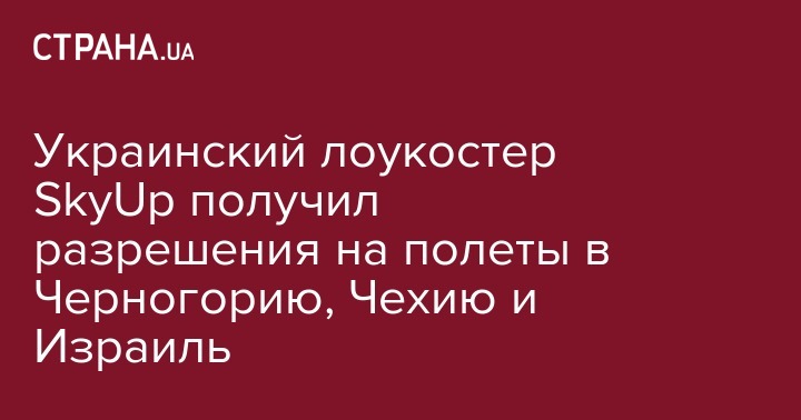 Государственная авиационная служба Украины согласовала украинской авиакомпании SkyUp получение прав на регулярные рейсы по ряду маршрутов в Черногорию, Чехию и Израиль, отказав в полетах в Албанию, передает Интерфакс-Украина.