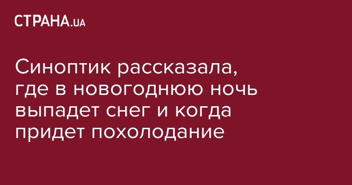 В новогоднюю ночь небольшой снег может накрыть запад, севере, Луганскую, Николаевскую и Херсонскую области. На остальной территории будет сухо. Об этом в соцсети пишет синоптик Наталья Диденко.