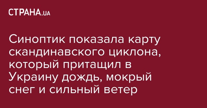 Синоптик показала карту скандинавского циклона, который притащил в Украину дождь, мокрый снег и сильный ветер