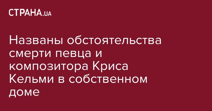 Названы обстоятельства смерти певца и композитора Криса Кельми в собственном доме