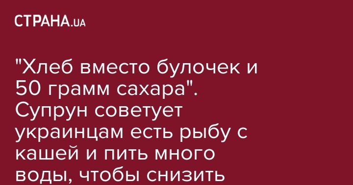 "Хлеб вместо булочек и 50 грамм сахара". Супрун советует украинцам есть рыбу с кашей и пить много воды, чтобы снизить риск диабета и рака