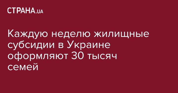 Директор департамента госсоцпомощи Минсоцполитики Виталий Музыченко заявил, что 30 тысяч семей еженедельно обращаются за оформлением жилищной субсидии. Такую цифру Музыченко назвал относительно небольшой, передает "Интерфакс Украина".