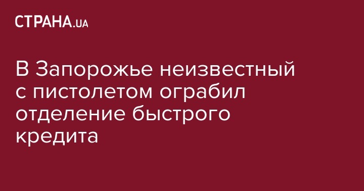 Вооруженный преступник совершил разбойное нападение на отделение быстрого кредита по ул.Счастливой в Запорожье в четверг, 3 января, сообщает пресс-служба прокуратуры Запорожской области.