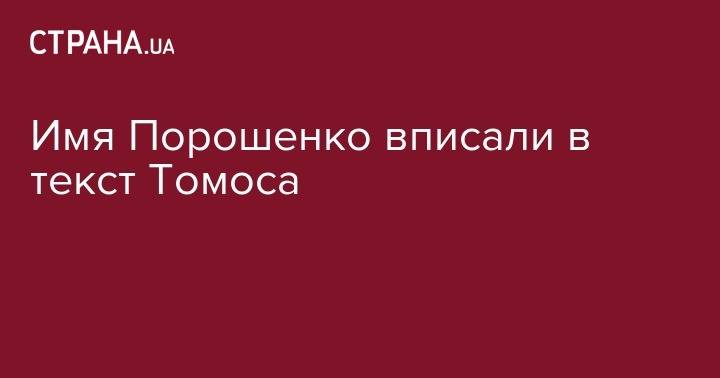 Имя президента Петра Порошенко вписали в текст Томоса о предоставлении автокефалии Православной церкви Украины. Об этом свидетельствует текст документа. В тексте говорится, что томос предоставляется предстоятелю Православной церкви Украины Епифанию и президенту Украины Петру Порошенко.