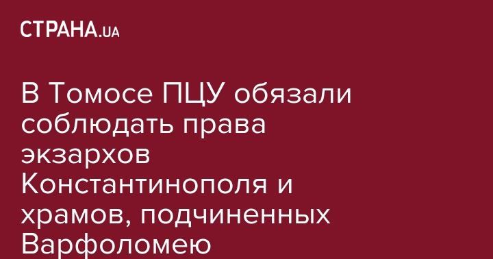 "Для решения значительных вопросов церковного, догматического и канонического характера следует Блаженнейшему митрополиту Киевскому и всея Украины, от имени Священного Синода своей Церкви обращаться к нашему Святейшему Патриаршего и Вселенского Престола, стремясь от него авторитетного мнения и твердого взаимопонимания, причем права Вселенского Престола на Экзархат в Украине и священные ставропигии сохранятся неприуменьшенными", - говорится в Томосе.
