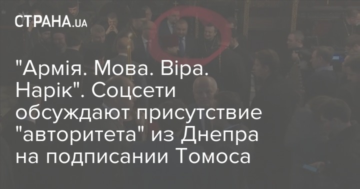 "Можете мне сто миллионов раз рассказать какая замечательная и богоугодная новая единая поместная православная, и какая ещё там не помню, церковь в Украине. Но прежде объясните мне присутствие на этом фото с тем самым пресловутым томосом бандита, у которого руки по локоть в крови невинных жертв, известного в Днепре под кличкой Нарик (на фото обведен в кровавый кружочек). Картина "Нарик и томос".