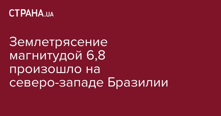 Подземные толчки магнитудой 6,8 зафиксированы на северо-западе Бразилии, сообщает ТАСС со ссылкой на Геологическую служба США (USGS).
