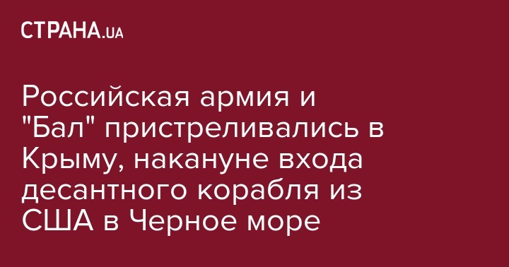 Перех входом в воды Черного моря большого американского десантного корабля с морской пехотой на борту, российские военные провели в Крыму учебные стрельбы ракетных комплексов "Бал", которые расположены на аннексированном полуострове.