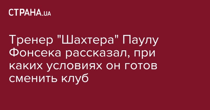 Тренер "Шахтера" Паулу Фонсека рассказал, при каких условиях он готов сменить клуб