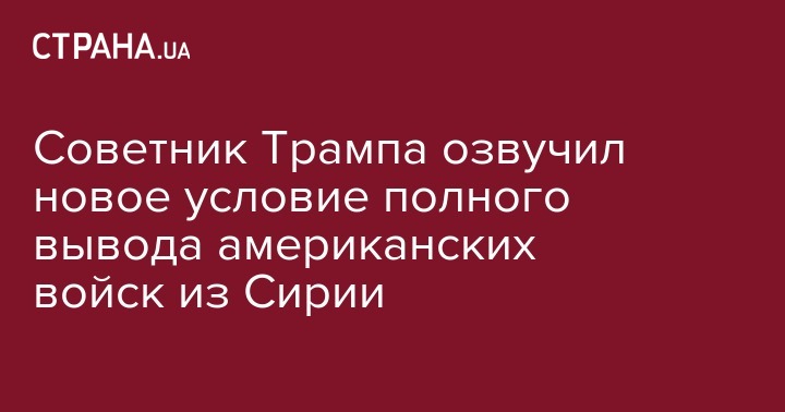 "С северо-востока Сирии это надо сделать таким образом, чтобы обрести уверенность в поражении "Исламского государства" и невозможности возрождения этой угрозы против нас, обеспечить защиту Израиля и наших друзей в регионе....", - заявил советник Трампа.